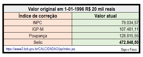 De acordo com a projeção de valores, se atualizados os R$ 20 mil reais hoje seria: