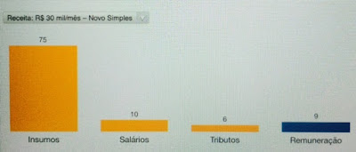 Considerando folha salarial e insumos de 10% da receita cada um. Números em %
